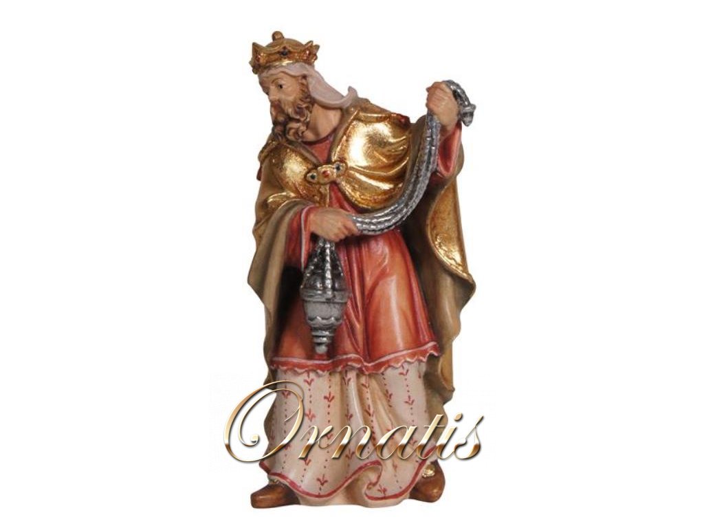 Kašpar, jeden ze tří mudrců, který následoval betlémskou hvězdu a přinesl narozenému Ježíškovi v jesličkách jako kadidlo. Král Kašpar je znázorňován jako mladý král, který v rukou drží myrhu. V betlému stojí za klečícím starcem Melicharem. Na hlavě má turban s královskou korunou. Nabízíme Vám online prodej krásného ztvárnění dřevěné postavy krále Kašpara, mudrce přicházejícího z východu do Betléma.