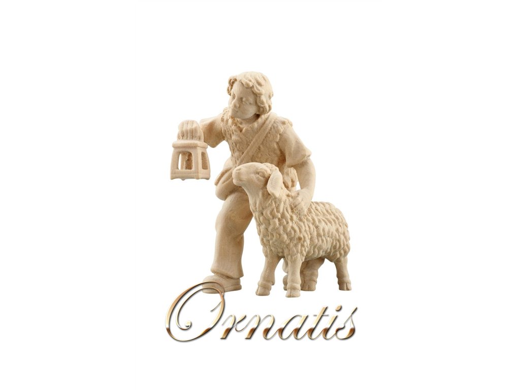 Chlapec s ovcí a lucernou Dřevěná figurka chlapce s ovcí a lucernou