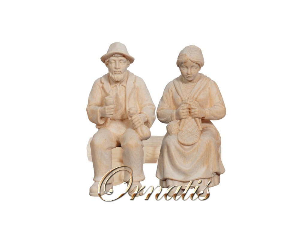 Detailní zpracovnání postav do betlému v podobě páru babičky a dědečka, kteří sedí na lavičce. Dřevěné betlémy jsou krásný doplněk Vašeho interiéru a mnohaletou tradicí naší kultury. Prodej vánočních dřevěných betlémů.
