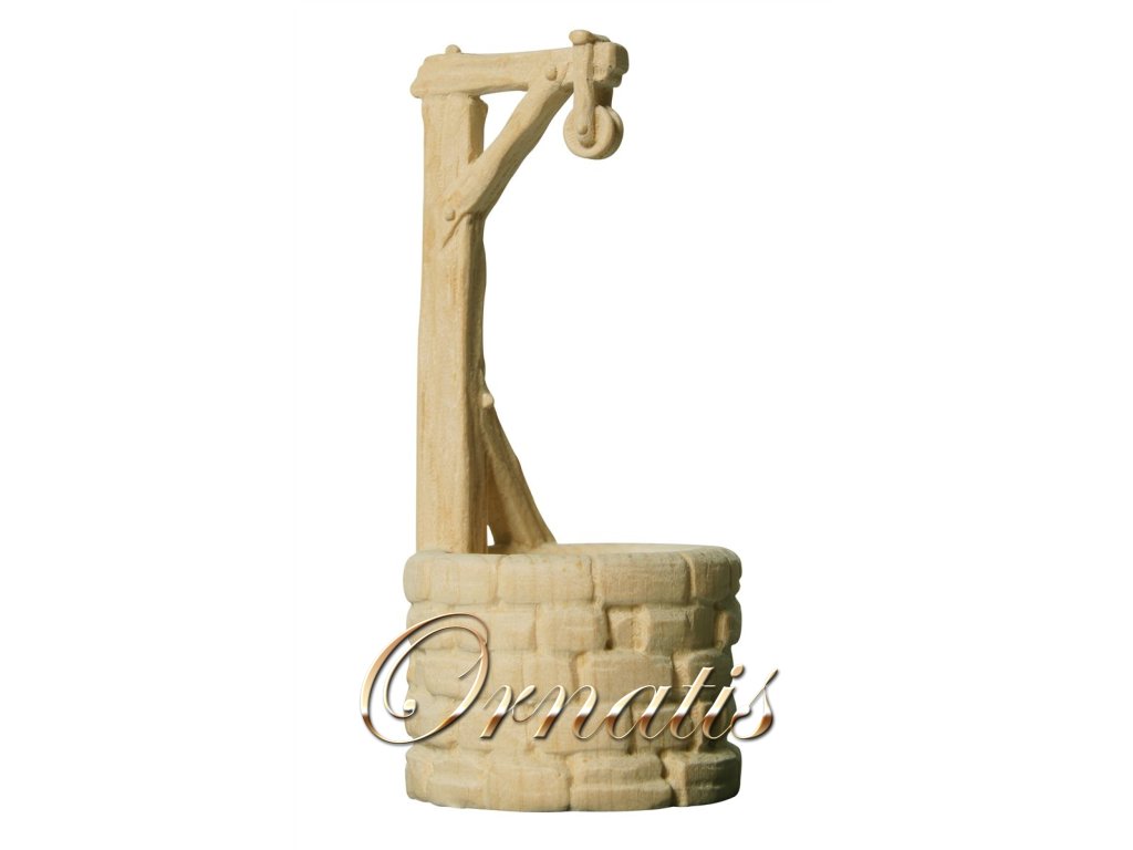 Soška do betlému v podobe studny. K této sošce je vhodné zakoupit také ženu sedící na studni, kterou lze na studnu posadit. Detailně zpracovaná figurka do betlému je vyřezána z Borovice alpské.