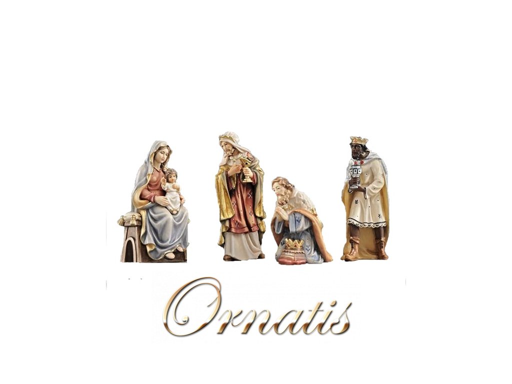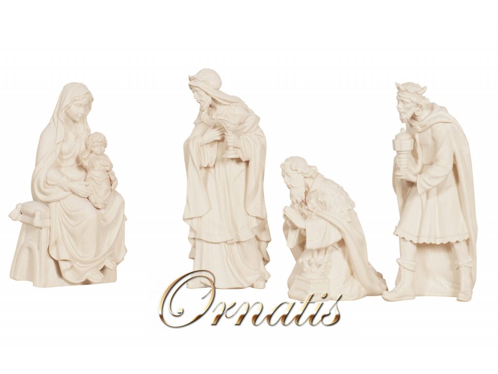 Dřevěné vyřezávané vyobrazení Panny Marie s Ježíškem a tří králů, kteří se přicházejí poklonit narozenému Ježíškovi a jeho matce Panně Marii. Sošky jsou vyřezány z javorového dřeva a ručně malovány olejovými barvami . Soška je určena do interiéru.